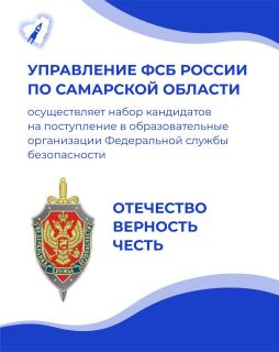 УФСБ России по Самарской области объявляет набор абитуриентов для поступления в образовательные организации Федеральной службы безопасности Российской Федерации.
